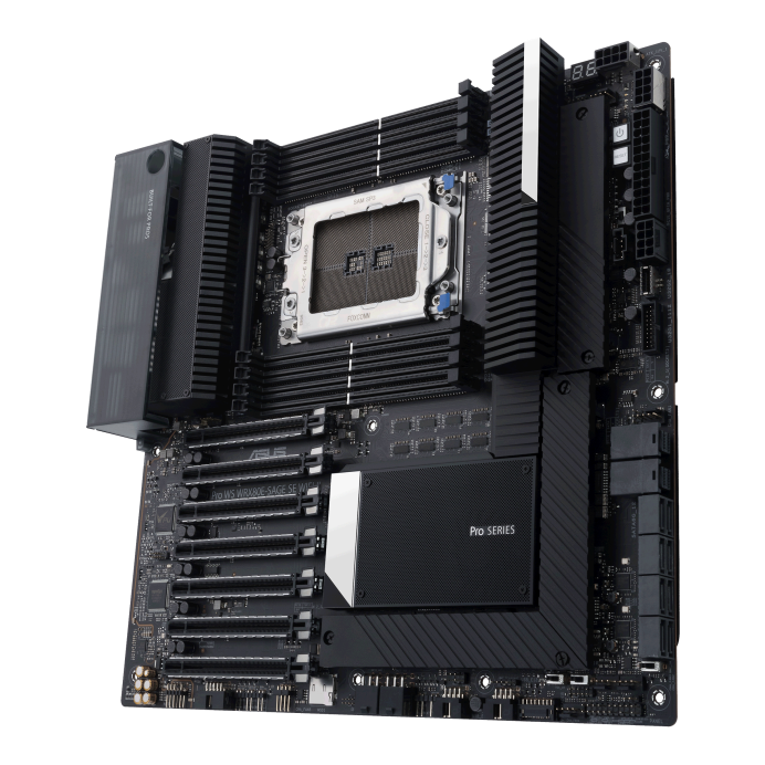AMD WRX80 Ryzen? Threadripper? PRO extended-ATX 工作站主板配備雙 Intel 10 G LAN, USB 3.2 Gen 2x2 Type-C 接口, 7 x PCIe 4.0 x16 插槽, 3 x M.2 PCIe 4.0, ASMB9-iKVM, 2 x U.2 和 16供電模組