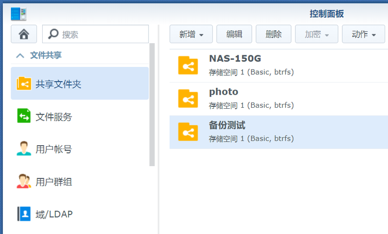 1. Add a shared folder to the shared folder: backup test;