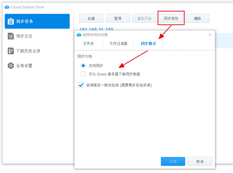 8. Double-click the Cloud Station Drive icon in the tray to open the software and you can see the running status of the backup.