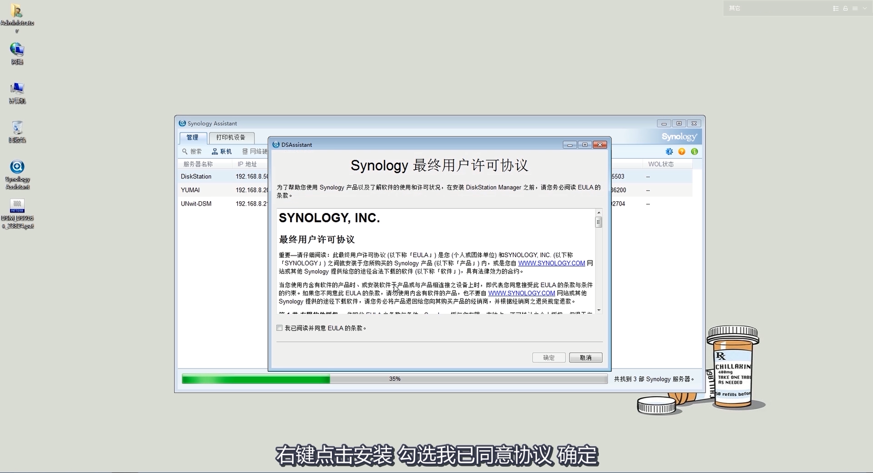 Then follow the process and click to agree to the Synology End User License Agreement.