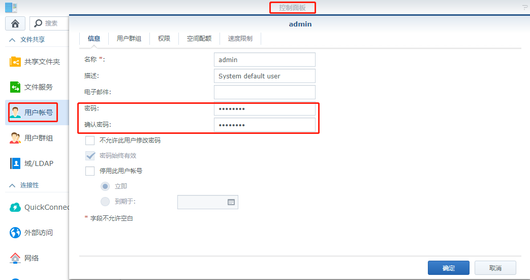 Then you can set another password for the admin in the personal settings here. The default empty password is not acceptable.