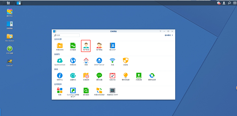 First, we enter the control panel in the DSM system of Synology nas, select the user account.