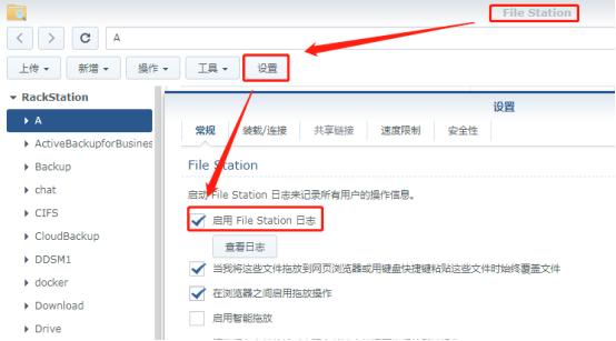 The premise is to open the log function in the fileStation settings.
