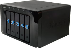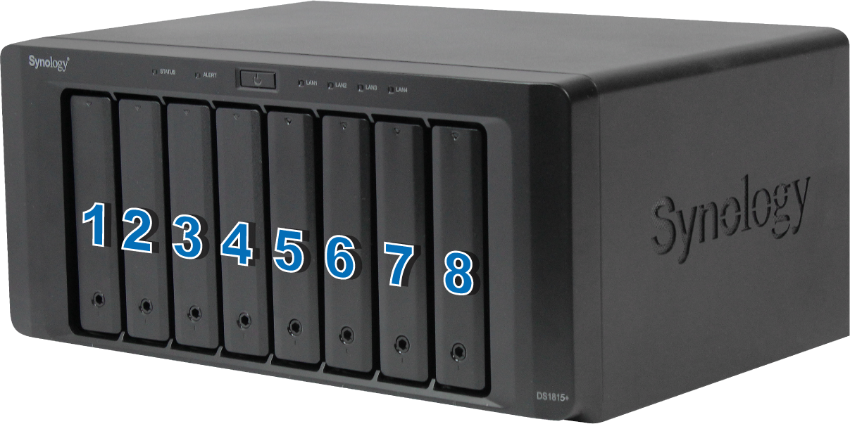 For Synology NAS with 2 or more hard drive models, the hard drive locations are sorted from left to right or top to bottom. To find the actual hard drive, please refer to the number shown below.