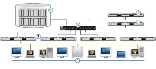 It adopts 8Gb fiber network, and uses Gisdom 1682 8Gb fiber array and two OS X Server metadata servers.