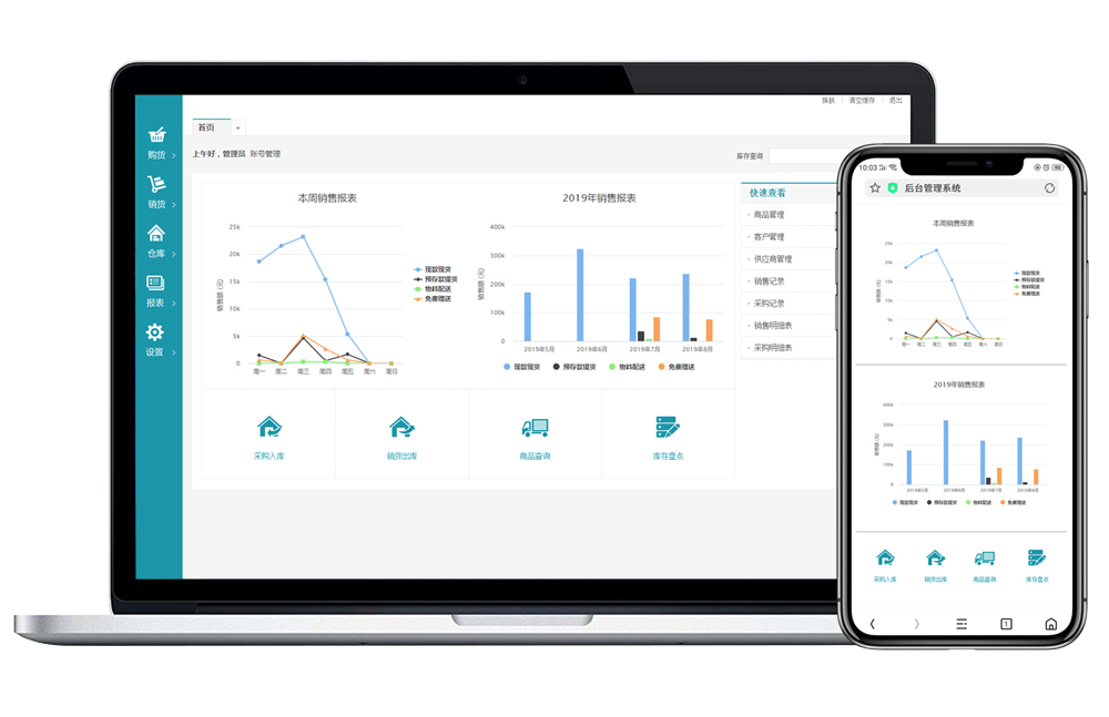 簡潔明了的報表分析功能,可以用在多種系統數據的統計上,有助于了解公司的狀況,如財務、資產、人員情況、客戶、訂單、經營、倉儲等多個方面。