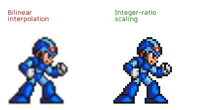 畫面縮放的問題對部分游戲來說可能沒多大影響,但對一些像素游戲來說,有沒有整數(shù)縮放差異是很大的,如上圖所示,整數(shù)縮放的畫面更符合像素游戲的精髓,畫質(zhì)更高,而差值算法的更模糊了。