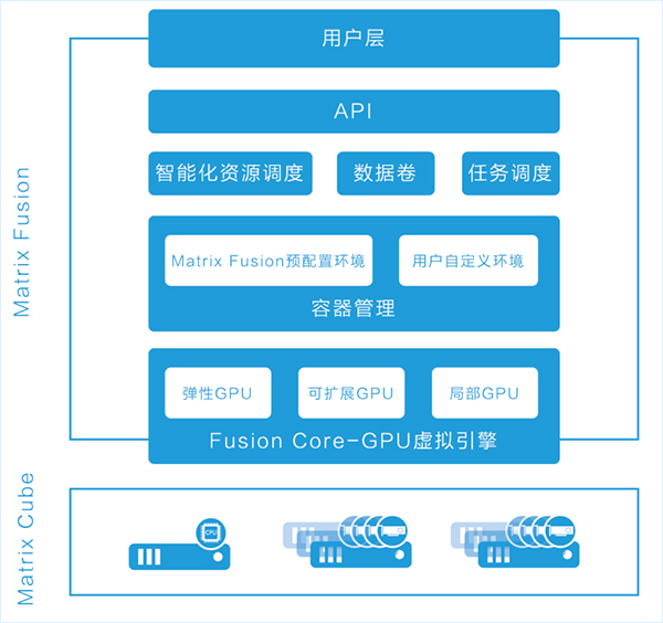 Matrix Fusion強(qiáng)大的靈活性來源于Fusion Core計(jì)算虛擬化引擎。Fusion Core控制應(yīng)用和基礎(chǔ)GPU計(jì)算之間的API調(diào)用指示,允許GPU負(fù)載靈活分布于本地GPU內(nèi)存、網(wǎng)絡(luò)附加GPU、擴(kuò)展至高達(dá)64個(gè)GPU,提供強(qiáng)大的整體性能。