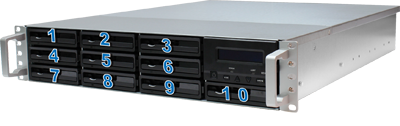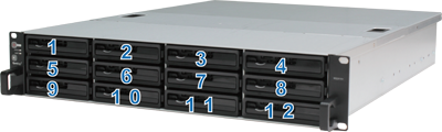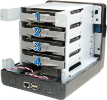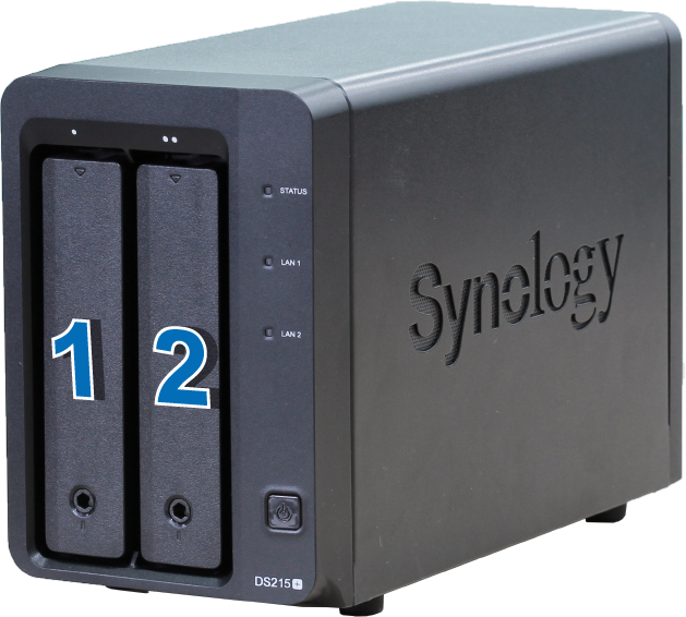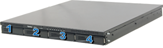 針對(duì) 2 顆或以上硬盤(pán)機(jī)種的 Synology NAS,硬盤(pán)位置的排序由左至右,或是由上至下。 要找到實(shí)際相應(yīng)硬盤(pán),請(qǐng)參照下圖所示的編號(hào)。